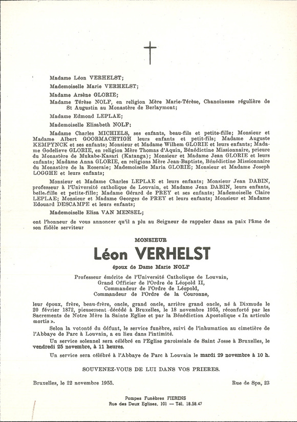 Death of Léon Verhelst at the age of 83